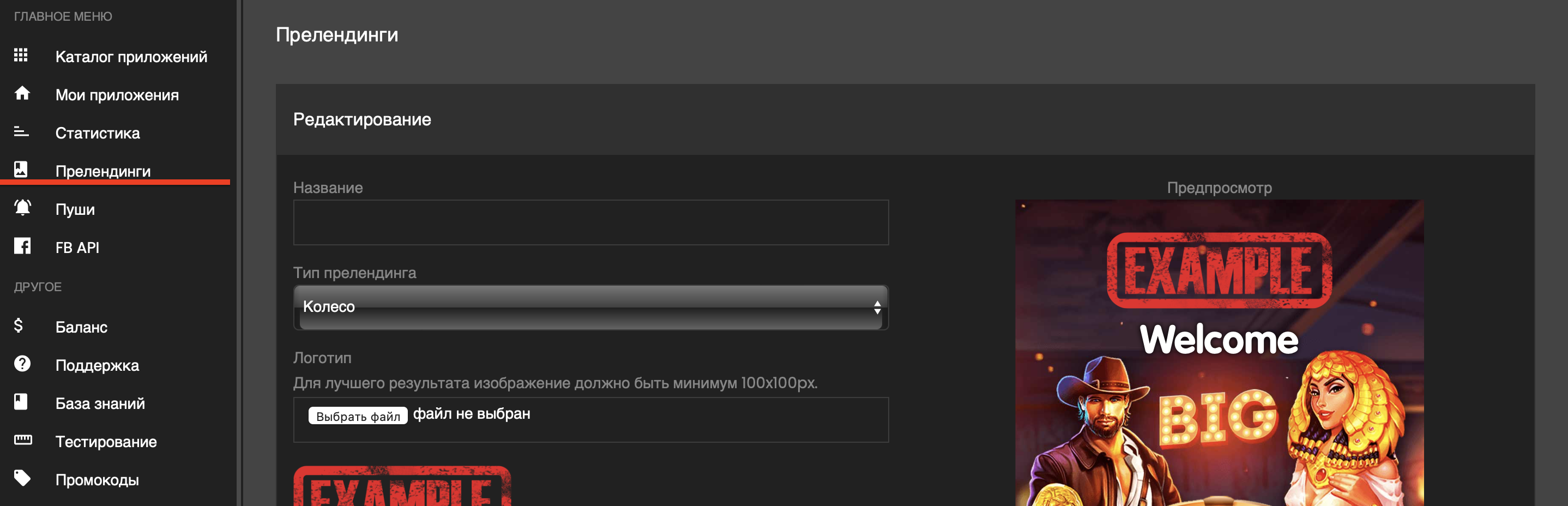 Вы можете подгрузить логотип своего оффера для повышения заинтересованности и доверия пользователя.