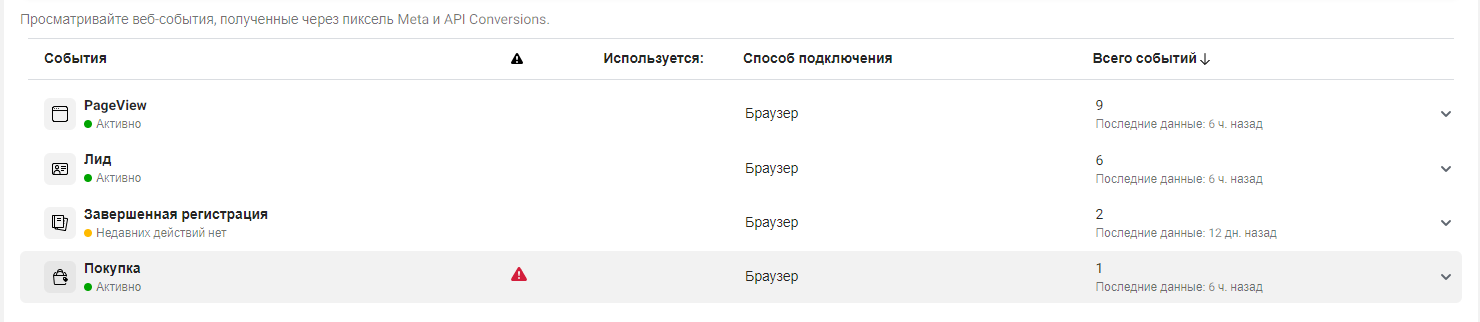 В стандартной настройке инсталлы приходят в event manager как событие lead, покупка как purchase, регистрация как complete registration.