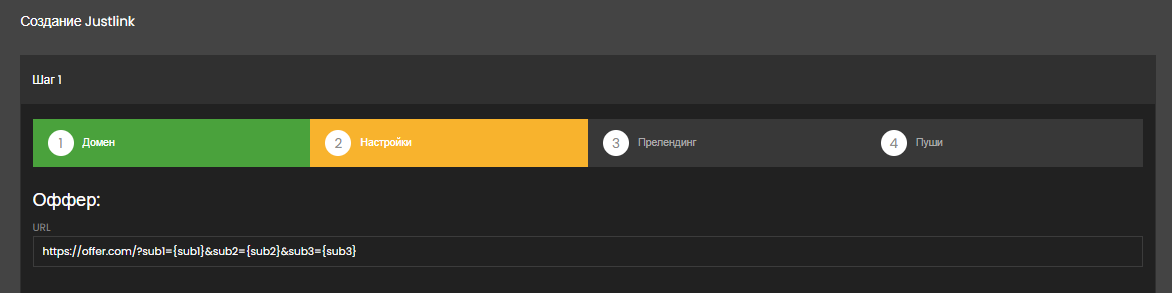 Укажите вашу оффер-ссылку или потоковую ссылку трекера в формате https://offer.com/